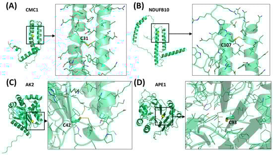 In the present review, we comprehensively describe the functional, molecular, and structural properties of the regulated substrates. The evolutionarily conserved hCHCHD4 protein and its putative substrates have been the subject of very interesting literature reviews [10,11,37,39,40,41,42], but these have essentially focused on the functional and pathological aspects of the redox-regulated substrates. Here, after presenting a detailed description of the notations used in this manuscript, along with an overview of the literature search methodology and the procedures employed to predict the three-dimensional structures of the hCHCHD4 redox ligands (Section 2), we offer a concise summary of the fundamental molecular and functional properties of this protein, as well as its extensively studied yeast homolog, yMIA40 (see Section 3). Then, we focus on the molecular players in the interaction and recognition of the substrates by the hCHCHD4 oxidase, with special attention paid to the Cys residues involved in the formation of a crucially transient disulfide bridge (Section 4). Furthermore, we inspect the Protein Data Bank (PDB) [43] for the three-dimensional structure of hCHCHD4 and its complexes (Section 5). However, since the available experimental structural data are extremely limited, in Section 6, we have integrated this information by searching the EBI-AlphaFold database [44] and performing exhaustive predictions of the three-dimensional structures of CHCHD4 redox-regulated substrates using the innovative and powerful approach based on machine-learning implemented in AlphaFold (AF), which provides accurate atomic-level information on proteins [45,46].