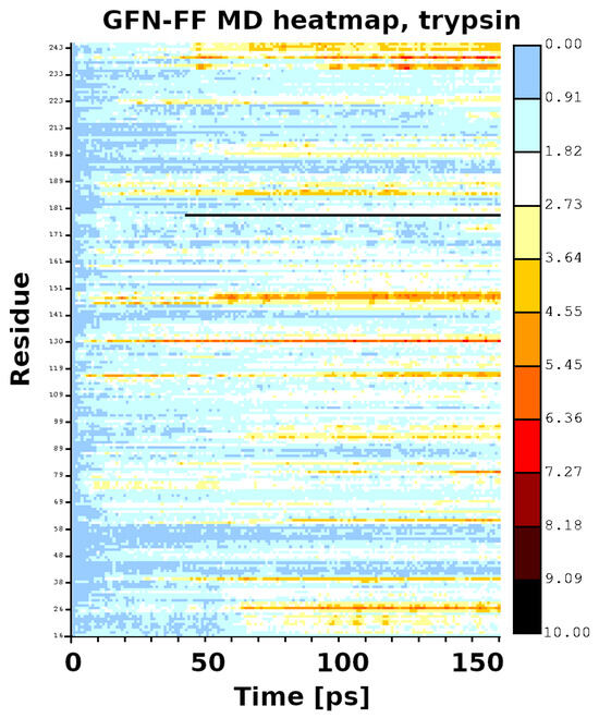 Heatmap for the first 140 ps of the GFN-FF MD run of trypsin.