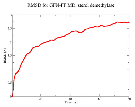 The RMSD in the 80 ps GFN-FF MD run for the sterol demethylase.