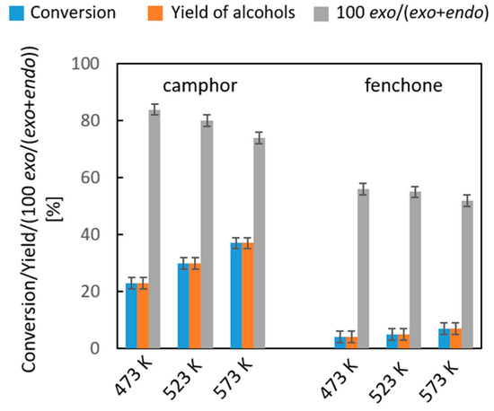 2.2.3. Liquid- and Vapor-Phase Transfer Hydrogenation of Bicyclic Ketones: 2-Norbornanone, Camphor, and Fenchone