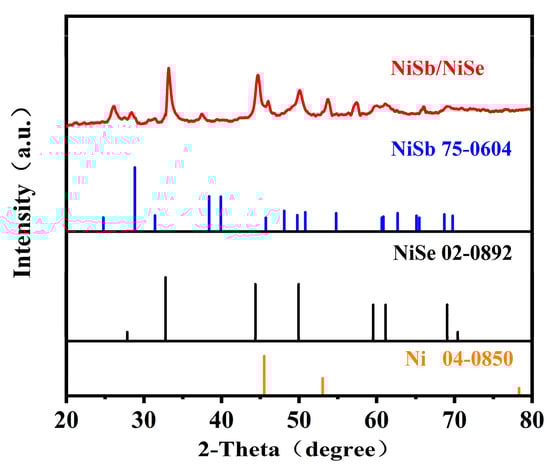 XRD patterns of NiSb/NiSe electrode material.