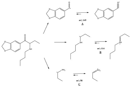Predicted EI-MS fragmentation pathway of N-butyl-norbutylone (1).