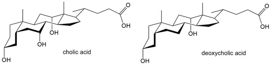 - Small, D.M. The physical chemistry of cholanic acids. In The Bile Acids: Chemistry, Physiology and Metabolism; Nair, P.P., Kritchevsky, D., Eds.; Plenum Press: New York, NY, USA, 1971; Volume 3, pp. 249–332. [Google Scholar]