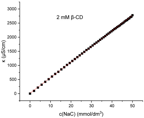 As seen in Figure 6, there is no such breakpoint of κ(c) for sodium deoxycholate or sodium cholate in aqueous solutions or in 2 mM β-cyclodextrin aqueous solutions (Supplementary Materials).