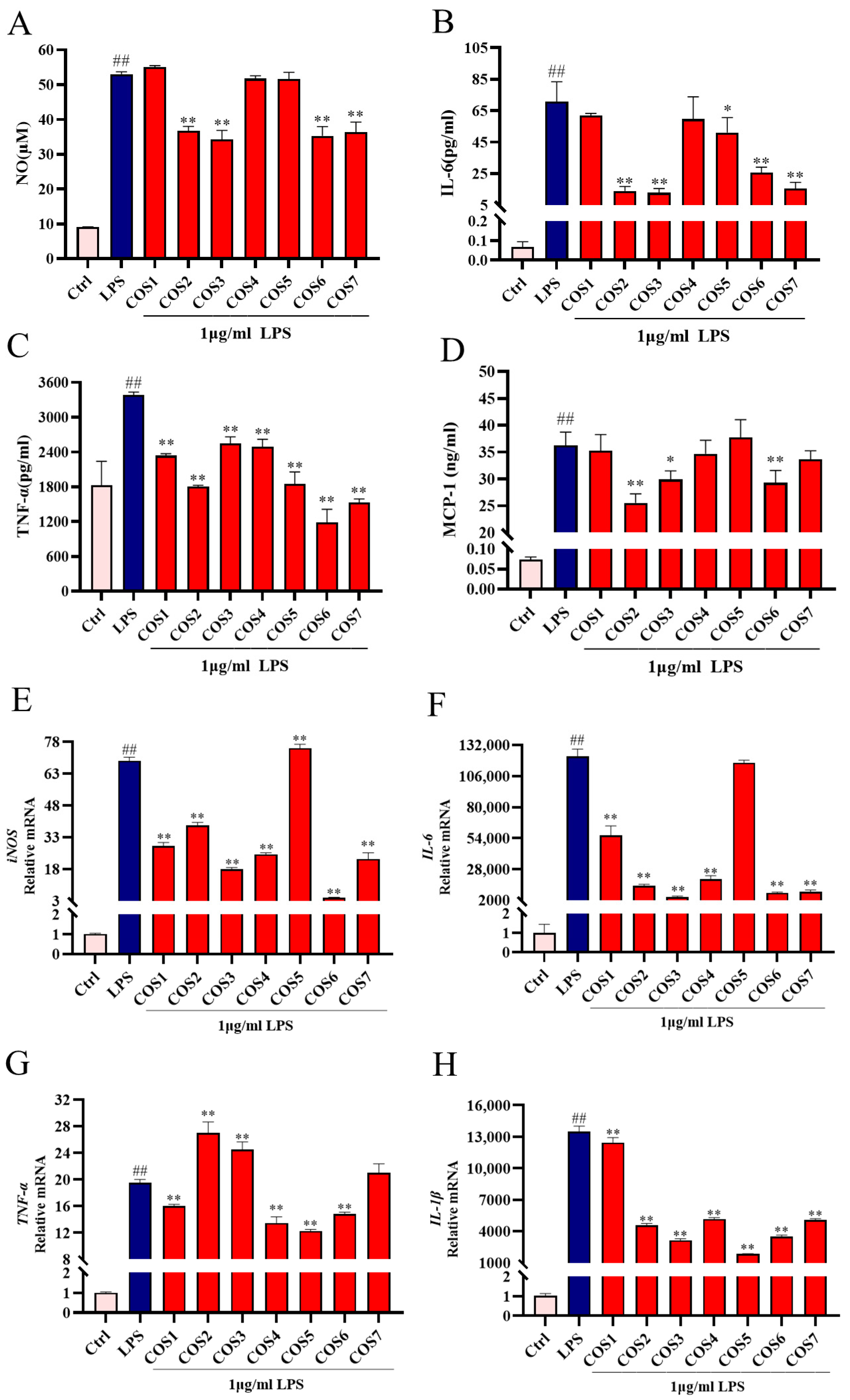 2.2. Effect of COS Polymerization Degree on LPS-Induced Inflammatory Signaling