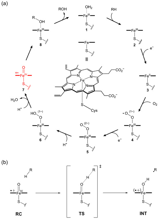 - Guallar, V.; Baik, M.-H.; Lippard, S.J.; Friesner, R.A. Peripheral Heme Substituents Control the Hydrogen-Atom Abstraction Chemistry in Cytochromes P450. Proc. Natl. Acad. Sci. USA 2003, 100, 6998–7002. [Google Scholar] [CrossRef]