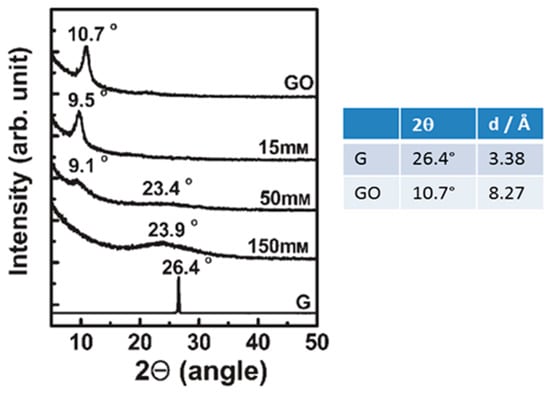 This method is unique and attractive because single-layer graphene can be produced on a large scale and at a relatively low cost [67]. Graphene oxide is therefore an important precursor that can be obtained from graphite using suitable oxidizing agents, which mainly consist of KMnO4 and NaNO3 in H2SO4 solution according to the well-known Hummers’ method developed in 1958 [68].