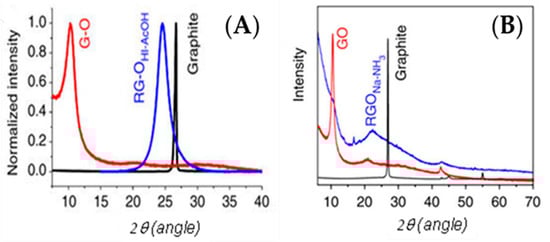 The reduction process can also be achieved by thermal treatment (thermal annealing) in inert or reductive atmospheres at temperatures above 200 °C [122,123,124,125,126]; with this method, oxygen functionalities are removed in the form of water, carbon dioxide, and carbon monoxide.