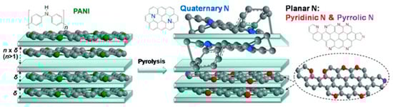 - Qin, L.; Yuan, Y.F.; Wei, W.; Lv, W.; Niu, S.Z.; He, Y.B.; Zhai, D.Y.; Kang, F.Y.; Kim, J.K.; Yang, Q.H.; et al. Graphene-Directed Formation of a Nitrogen-Doped Porous Carbon Sheet with High Catalytic Performance for the Oxygen Reduction Reaction. J. Phys. Chem. C 2018, 122, 13508–13514. [Google Scholar] [CrossRef]