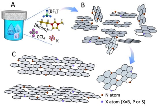 Thermal annealing is a well-established process for the preparation of heteroatom-doped graphene using GO and suitable molecules as the heteroatom source. Sheng et al. [127] reported a facile and catalyst-free approach for the synthesis of nitrogen-doped graphene by thermal annealing of graphite oxide with a low-cost industrial material, melamine, as a nitrogen source.