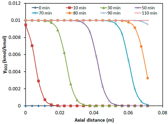 Axial concentration distribution of SO2 at different time intervals.