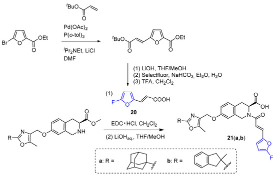 - Forrest, A.K.; O’Hanlon, P.J. The preparation and lithiation of bromofluorofurans via a novel fluorodecarboxylation. Tetrahedron Lett. 1995, 36, 2117–2118. [Google Scholar] [CrossRef]