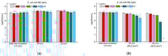 - Nakonechny, F.; Barel, M.; David, A.; Koretz, S.; Litvak, B.; Ragozin, E.; Etinger, A.; Livne, O.; Pinhasi, Y.; Gellerman, G.; et al. Dark antibacterial activity of Rose Bengal. Int. J. Mol. Sci. 2019, 20, 3196. [Google Scholar] [CrossRef]