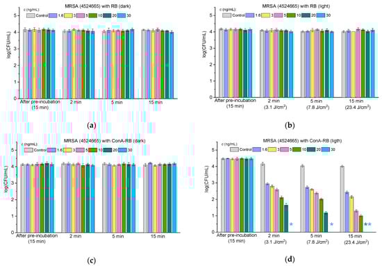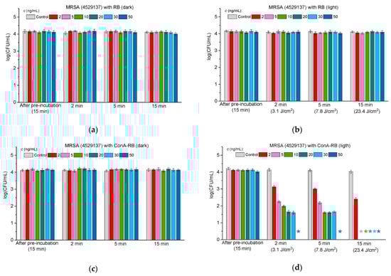 2.3.1. Antibacterial Activity of Lectin–RB Conjugates Against Gram-Positive Bacteria