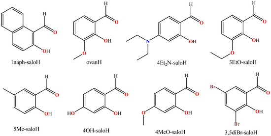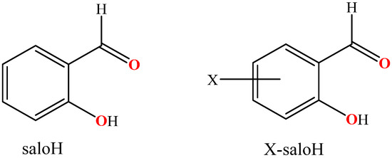 The syntax formula for salicylaldehyde (saloH) and substituted salicylaldehyde (X-saloH).