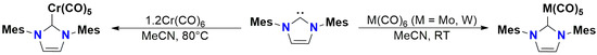 Synthesis of IMesNHC–M(CO)5 (M = Cr, Mo, W). Mes = 2,3,5-trimethylphenyl.
