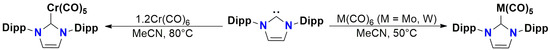 Synthesis of IPrNHC–M(CO)5 (M = Cr, Mo, W). Dipp = 2,5-diisopropylphenyl.