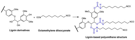 The reaction mechanism between lignin derivatives and octamethylene diisocyanate. Used with permission, copyright 2024 Elsevier.