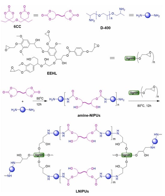Illustration of the synthesis pathways for preparing LNIPUs [71]. Used with permission, copyright 2023 Elsevier.