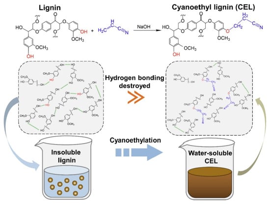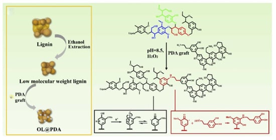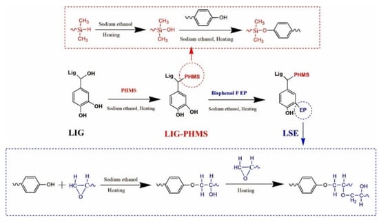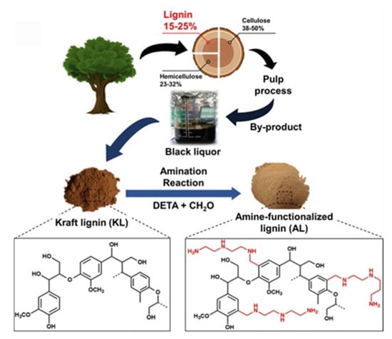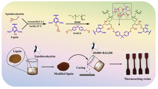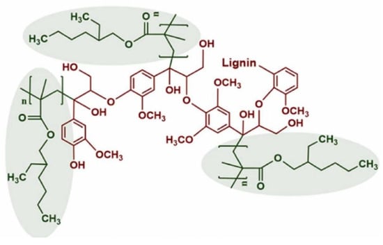 Illustration for the synthesis of lignin-based epoxy asphalt systems [83]. Used with permission, copyright 2023 Elsevier.