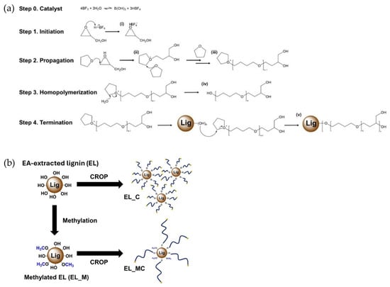 - Santos, C.C.O.; Ferreira, F.V.; Pinheiro, I.F.; Lona, L.M.F. Lignin valorization through polymer grafting by ring-opening polymerization and its application in health, packaging, and coating. J. Environ. Chem. Eng. 2023, 11, 109691. [Google Scholar] [CrossRef]