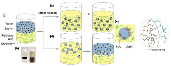 - Yu, S.; Lu, Y.; Guo, S.; Guo, T.; Takagi, A.; Kamkar, M.; Rojas, O.J. Lignin-Polylactide Reverse Emulsions for Water and UV-Resistant Composite Films. ACS Sustain. Chem. Eng. 2023, 11, 12503–12513. [Google Scholar] [CrossRef]