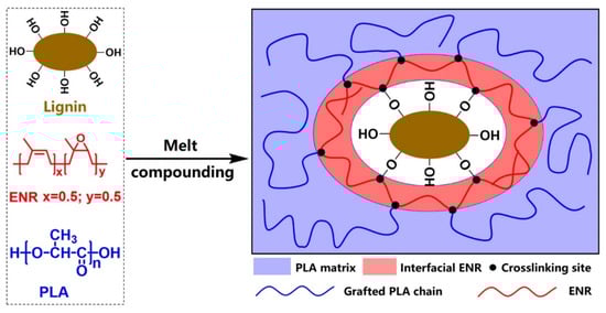 - Ou, W.-X.; Weng, Y.; Zeng, J.-B.; Li, Y.-D. Fully biobased poly(lactic acid)/lignin composites compatibilized by epoxidized natural rubber. Int. J. Biol. Macromol. 2023, 236, 123960. [Google Scholar] [CrossRef]