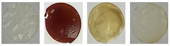 In another study by Fan and co-workers, WPU emulsions were developed using lignin nanoparticles (LNPs) derived from enzymatic hydrolysis lignin (EHL) [73]. The nanoscale dispersion of LNPs enhances interfacial bonding with the polyurethane matrix, contributing to better mechanical reinforcement and UV resistance without sacrificing flexibility—demonstrating the utility of nano-lignin as a multifunctional additive. A series of WPU composites (Figure 16) was formulated by varying the LNP content from 0 to 5 wt.%. Notably, the incorporation of 5 wt.% LNPs led to significant enhancements in the overall performance of the composites, particularly in terms of durability and UV resistance when compared to neat WPU. Kim et al. introduced an innovative approach to synthesizing WPU by incorporating lignin into a castor oil-based cationic waterborne polyurethane system [74]. This strategy remarkably reduced the solvent required for polymer synthesis by 50%. Lignin was incorporated in varying amounts (0–7 wt.%) to produce WPU composites (Figure 17). The results demonstrated that lignin improved mechanical properties, thermal stability, solvent resistance, UV resistance, and antibacterial activity. The composite containing 7 wt.% lignin exhibited a significantly higher tensile strength (5.57 MPa) than pure WPU (1.10 MPa). This data demonstrates that lignin acts not only as a passive filler but as an active reinforcing phase, contributing to load-bearing via π–π stacking and hydrogen bonding with the castor oil-based polyurethane segments. Furthermore, this composite displayed remarkable ethanol resistance and achieved 97.27% antibacterial activity against Escherichia coli (E. coli), compared to only 1.58% for the pure WPU.