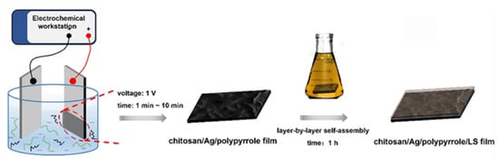 - Xu, T.; Gao, H.; Zhou, J.; He, M.; Ji, X.; Dai, H.; Rojas, O.J. Design of AgNPs doped chitosan/sodium lignin sulfonate/polypyrrole films with antibacterial and endotoxin adsorption functions. Int. J. Biol. Macromol. 2023, 229, 321–328. [Google Scholar] [CrossRef]