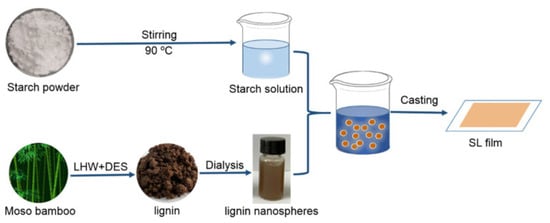 - Sun, X.; Li, Q.; Wu, H.; Zhou, Z.; Feng, S.; Deng, P.; Zou, H.; Tian, D.; Lu, C. Sustainable Starch/Lignin Nanoparticle Composites Biofilms for Food Packaging Applications. Polymers 2023, 15, 1959. [Google Scholar] [CrossRef]