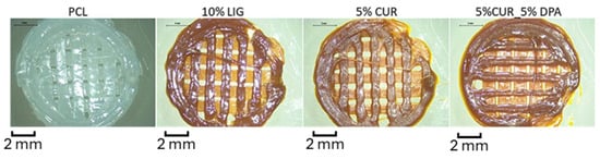 - Domínguez-Robles, J.; Cuartas-Gómez, E.; Dynes, S.; Utomo, E.; Anjani, Q.K.; Detamornrat, U.; Donnelly, R.F.; Moreno-Castellanos, N.; Larrañeta, E. Poly(caprolactone)/lignin-based 3D-printed dressings loaded with a novel combination of bioactive agents for wound-healing applications. Sustain. Mater. Technol. 2023, 35, e00581. [Google Scholar] [CrossRef]