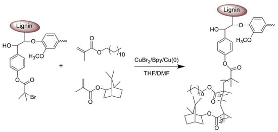 - Wu, M.; Wu, M.; Zhang, M.; Jiang, F.; Zhou, L. Preparation of all biomass lignin-based thermoplastic elastomers by ARGET ATRP. Ind. Crops Prod. 2023, 193, 116236. [Google Scholar] [CrossRef]