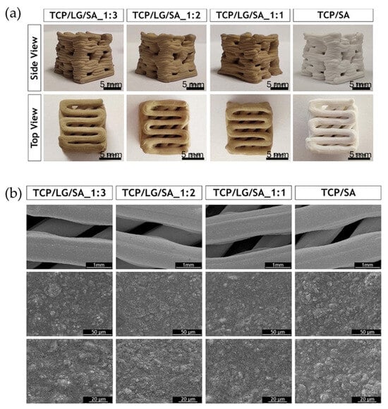 - Silva-Barroso, A.S.; Cabral, C.S.D.; Ferreira, P.; Moreira, A.F.; Correia, I.J. Lignin-enriched tricalcium phosphate/sodium alginate 3D scaffolds for application in bone tissue regeneration. Int. J. Biol. Macromol. 2023, 239, 124258. [Google Scholar] [CrossRef]