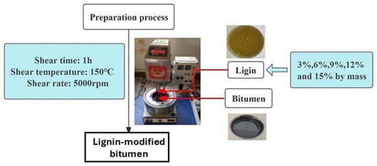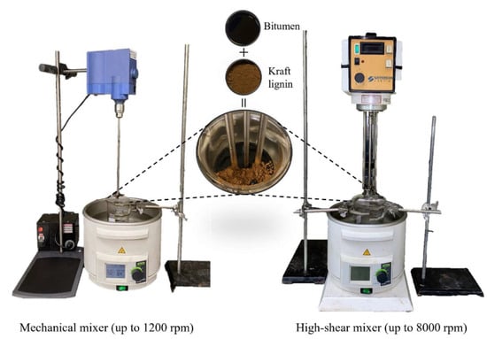 - Rezazad Gohari, A.; Lamothe, S.; Bilodeau, J.-P.; Mansourian, A.; Carter, A. Laboratory Study on Influence of Blending Conditions on Chemo-Thermal Characteristics of Lignin-Modified Bitumen. Appl. Sci. 2023, 13, 7766. [Google Scholar] [CrossRef]