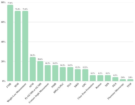 Figure 2. Commonly used methods for detecting biodegradation based on the structured literature search [graph created with the free version of canva.com].