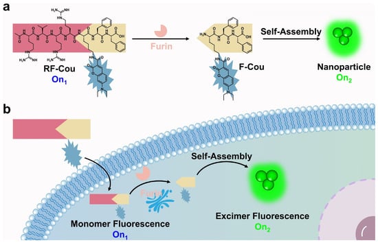 Chen P, Meng L, Wang Y, Yan X, Li M, Deng Y, Sun Y. Furin-Triggered Peptide Self-Assembly Activates Coumarin Excimer Fluorescence for Precision Live-Cell Imaging. Molecules. 2025; 30(11):2465. https://doi.org/10.3390/molecules30112465