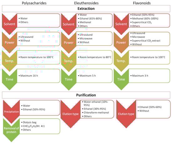 - Meng, Q.F.; Yu, X.K.; Xu, M.Y.; Li, M.L.; Gao, Z.H.; Fan, H. Extraction of Acanthopanacis Senticosi Polysaccharides and Their Antioxidative Effect. J. Jilin Univ. Inf. Sci. Ed. 2005, 43, 683–686. [Google Scholar] [CrossRef]
