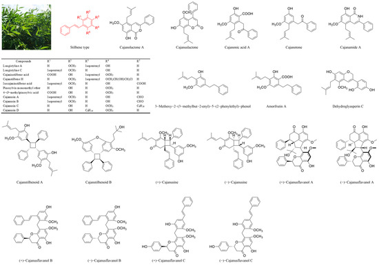 Structures of parts of stilbenes from Cajanus cajan (L.) Millsp. leaves (CCMLs).