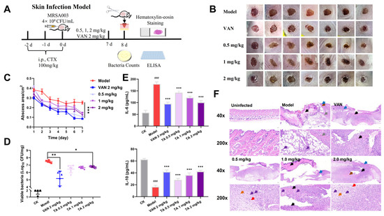 2.8. Tripterhyponoid A Showed Potential Therapeutic Capabilities in a Mouse Skin Infection Model
