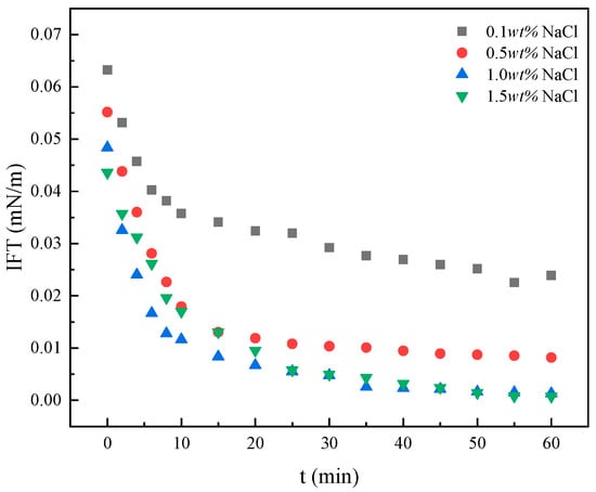 IFT of BS-12 at oil–water interface under different salt contents at 40 °C.