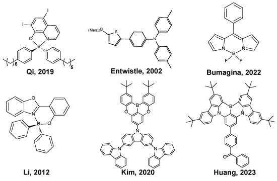 Relevant examples of organoboron luminescent compounds [6,7,8,10,11,12].