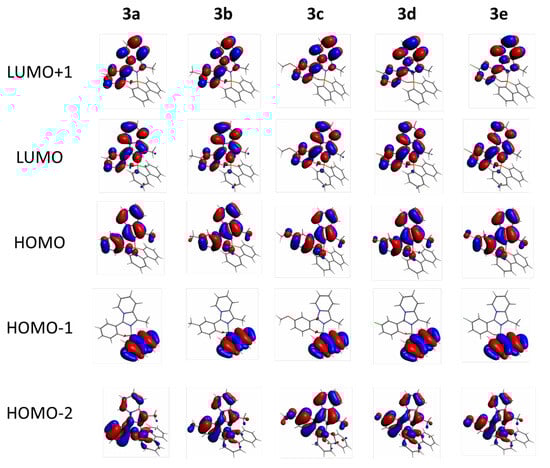 Calculated orbitals’ energies (eV) of compounds 3a–e (DFT//PBE0).