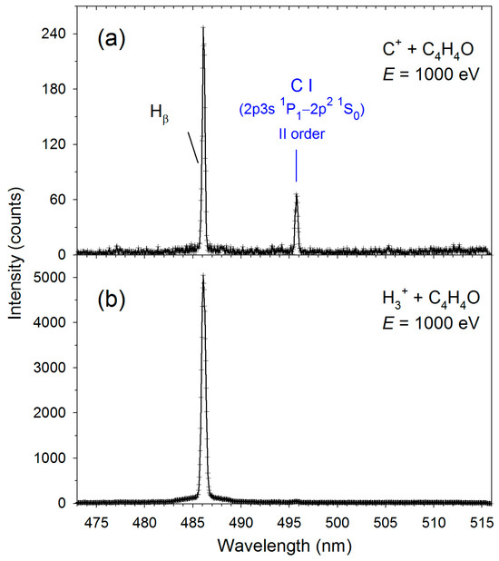- Wasowicz, T.J.; Pranszke, B. Interactions of protons with furan molecules studied by collision-induced emission spectroscopy at the incident energy range of 50–1000 eV. Eur. Phys. J. D 2016, 70, 175. [Google Scholar] [CrossRef][Green Version]