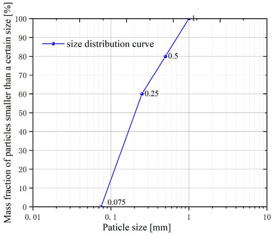 The sandbox model: To enable comprehensive experimental observation while minimizing soil disturbance from piezometers and other instruments, this study employs a small-scale transparent polymethyl methacrylate (PMMA) model with dimensions of 50 cm (L) × 4 cm (W) × 12 cm (H). The narrow width primarily affects the morphology of piping channels, but exhibits negligible effects on the overall development of piping [61]. The left side of the model serves as the inlet chamber, with a perforated partition plate placed between the sand sample and the inlet chamber to allow uniform water flow into the sample. Additionally, a geotextile filter is placed at the interface between the perforated partition plate and the sand sample to prevent sand particles from entering the inlet chamber. The top of the sandbox is sealed with a transparent polymethyl methacrylate plate, with a silicone pad placed between the cover and the sand sample. During the experiment, Vaseline is applied to the sidewalls of the model, and bolts are used to tightly secure the seal and prevent leakage. A 5 mm diameter water outlet is preset on the cover at a position of 35 cm from the inlet chamber to simulate the formation of a sand boil orifice of the overburden layer.