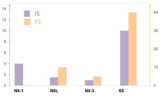 Comparison of sensitivity (Friction sensitivity and impact sensitivity) between S8 and compounds N8-1 [4], N8L [9], N8-3 [10].