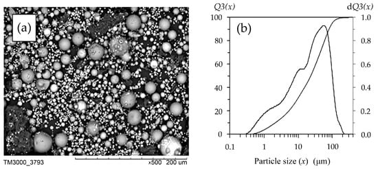 SEM image (a) and particle size distribution (b) of the original CFA.