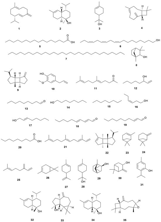 Structures of essential oil constituents profiled in Mediterranean Erica species.
