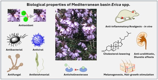 A vast array of biological activities has been documented for the Mediterranean basin Ericas. These are illustrated in Figure 9 and discussed in the next section.