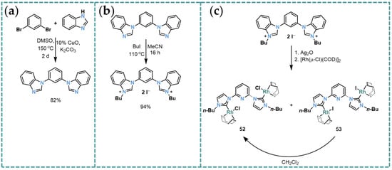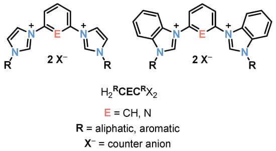 - Poyatos, M.; Mata, J.A.; Peris, E. Complexes with Poly(N-Heterocyclic carbene) Ligands: Structural Features and Catalytic Applications. Chem. Rev. 2009, 109, 3677–3707. [Google Scholar] [CrossRef] [PubMed]