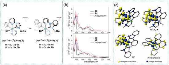3.1. Photophysical Property of Ru/Os-CNC Pincer Complexes